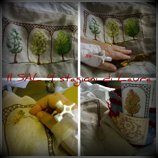 ... e il Sal 4 stagioni di Laura, un pannello a punto croce, che mi ha fatto compagnia anche in ospedale.Ma non solo, la scorsa estate mi ha regalato molto di più, come l'affetto delle mie amiche blogger , o il piacevole incontro con una fantastica famiglia di topolini...